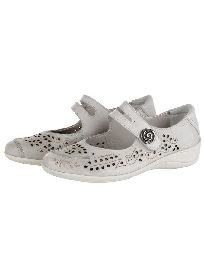 Nahkaiset tarrakengät. Laserleikattu rei’itys. Jalkapöydän päällä säädettävä tarraremmi. Tekokuituvuori ja irrotettava nahkasisäpohja (paksuus edessä 2 mm, takana 5 mm). Kenkiin voidaan vaihtaa irtopohjalliset. Taipuisa ja uritettu ulkopohja, jossa 30 mm:n kanta. Lestin leveys H.
