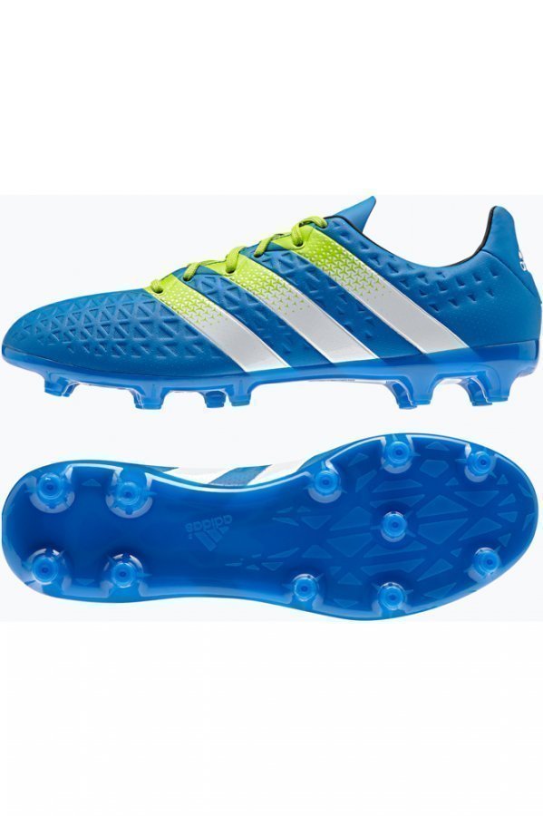 adidas Ace 16.3 FG/AG -jalkapallokengät, joiden ulkopohja on suunniteltu kovalle alustalle ja tekonurmelle. Päällinen kestävää synteettistä materiaalia – upea tuntu ja istuvuus. Mahdollistavat erittäin nopeat liikkeet sekä täyden hallinnan ja vakauden kovalla alustalla (kolmannen ja neljännen sukupolven tekonurmella). TOTAL CONTROL -nappulat. Päällinen: synteettistä materiaalia Vuori: kangasta/synteettistä materiaalia Sisäpohja: pehmustettu, kangaspäällysteinen Ulkopohja: synteettistä materiaalia. Nappulat tekonurmelle/kovalle alustallle.