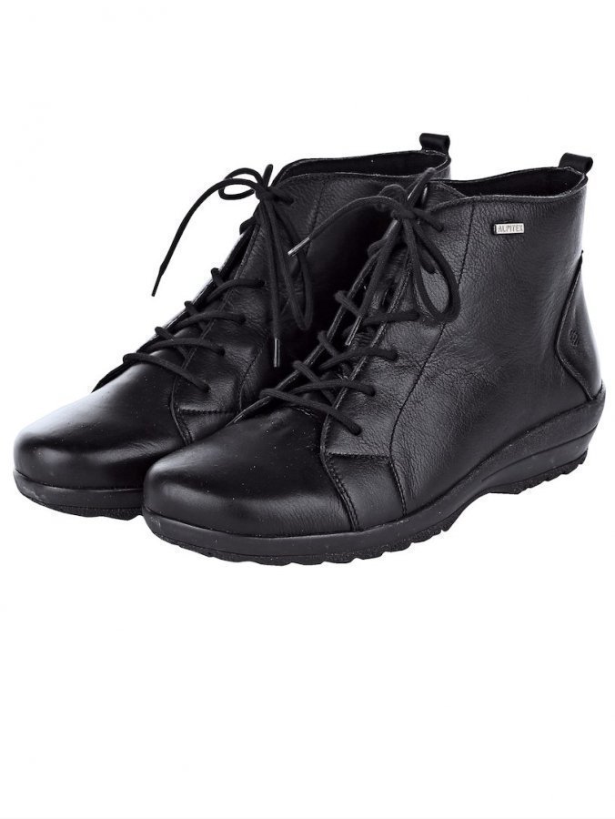 Ajattomat nilkkurit. Pehmeää naudannahkaa. Vettähylkivä ja tuulenpitävä Alpitex-kalvo pitää jalat kuivina ja lämpiminä. Tekstiilivuori sekä irrotettava tekstiilisisäpohja (pohjan paksuus edessä 3,5 mm, takana 7 mm). Nilkkureihin voidaan vaihtaa irtopohjalliset. Taipuisa ulkopohja sekä 35 mm:n kanta.