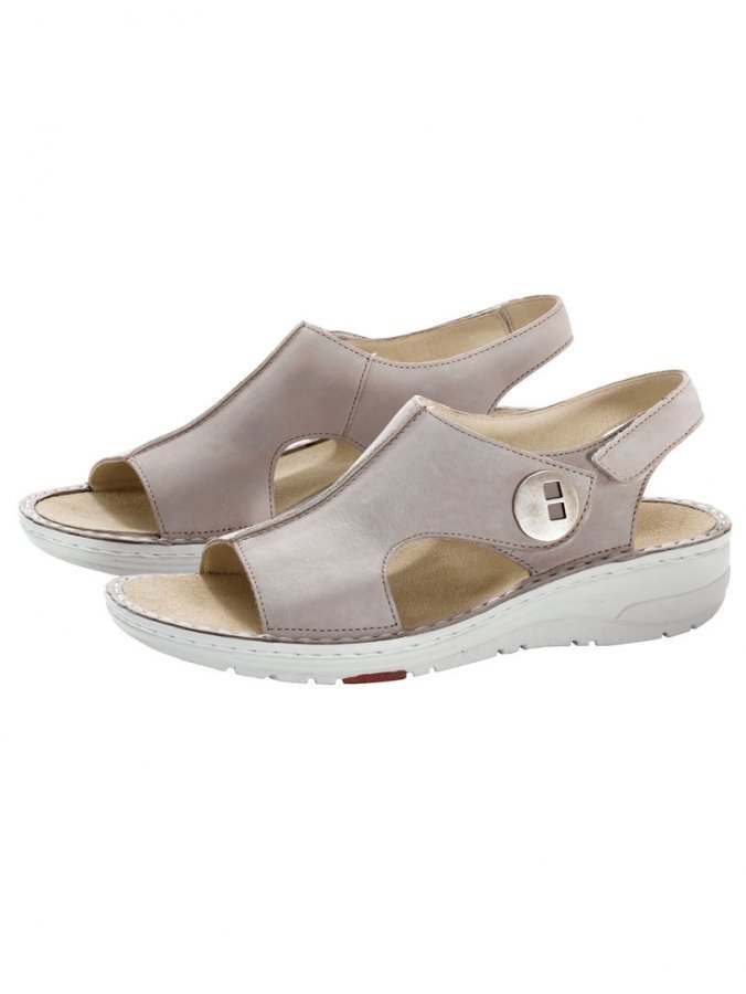 Nahkaiset berkemann-sandaalit. Helpot säätää omiin jalkoihin sopiviksi säädettävien tarraremmien ansiosta. Nahkavuori ja irrotettava nahkasisäpohja (paksuus edessä 5 mm, takana 3,5 mm). Kenkiin voidaan vaihtaa irtopohjalliset. Taipuisa ja uritettu ulkopohja, jossa on 35 mm:n kanta. Lestin leveys H. Tilaa kengät 1/2 numeroa tavallista kokoasi pienemmässä koossa.