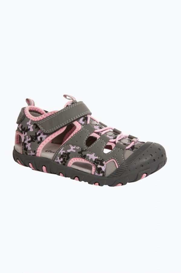 Sporttiset Gulliver-sandaalit. Kätevä ja tukeva malli, jonka kumivahvike suojaa varpaita. Istuvuutta säädetään jalan päältä kulkevalla ja kannassa olevalla tarranauhalla. Kevyesti pehmustettu, hiertämätön vuori. Pitävä pohja. Päällinen: synteettistä materiaalia Vuori: kangasta Sisäpohja: kangasta Ulkopohja: kumia Kun tilaat lapselle kenkiä, laske tämän verran kasvunvaraa: sandaalit/kävelykengät: 10–15 mm kengät/saappaat: 15–20 mm Kengän koko = sisämitta 24 = 156-162 mm 25 = 162-168 mm 26 = 168-175 mm 27 = 175-181 mm 28 = 181-188 mm 29 = 188-195 mm 30 = 195-202 mm 31 = 202-208 mm 32 = 208-215 mm 33 = 215-222 mm 34 = 222-228 mm 35 = 228-234 mm Mittaa lapsen jalka näin: Laita lattialle A4-kokoinen paperiarkki, niin että paperin pääty on seinässä kiinni. Laita lapsi seisomaan paperin päälle, niin että kantapää koskettaa seinää. Lapsen jalkojen tulisi olla vierekkäin ja kehon painon jakaantua tasaisesti molemmille jaloille, ilman että lapsi nojaa mihinkään. Tee paperille merkintä jalan pisimmästä kohdasta (useimmiten isovarpaan kohdalta) ja mittaa mittanauhalla pituus paperin päädystä merkintään. Lapsen jalka kasvaa keskimäärin näin nopeasti: 1–2-vuotiaalla noin 20 mm vuodessa 2–3-vuotiaalla noin 15 mm vuodessa 3–11-vuotiaalla noin 10 mm vuodessa