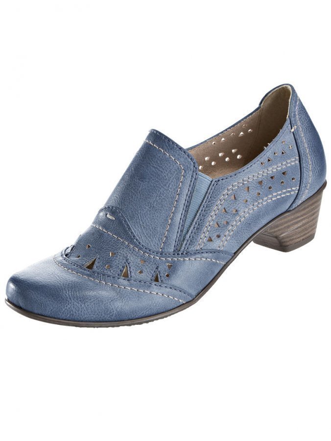 Kengät tekokuitua. Kesäinen rei’itys. Hyvä istuvuus molemmilla sivuilla olevien venykkeiden ansiosta. Vuori ja sisäpohja 100% polyesteriä. Joustava ulkopohja, korko 35 mm. Lestin leveys H.