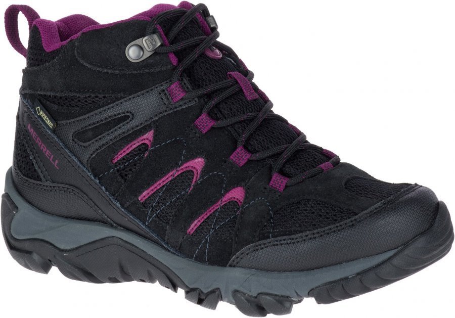 Naisten Merrell Outmost Vent -Gore-Tex-kengät ovat vedenpitävät, hengittävät ja tukevat. Kannassa vaimennus. Musta-fuksia. Tilaa!