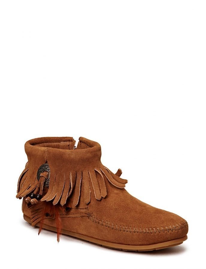 Minnetonka Valmistusmateriaali: Mokkanahka Vetoketjukiinnitys sivulla Hapsuyksityiskohta Pehmustettu sisäpohjallinen Pitävä pohja