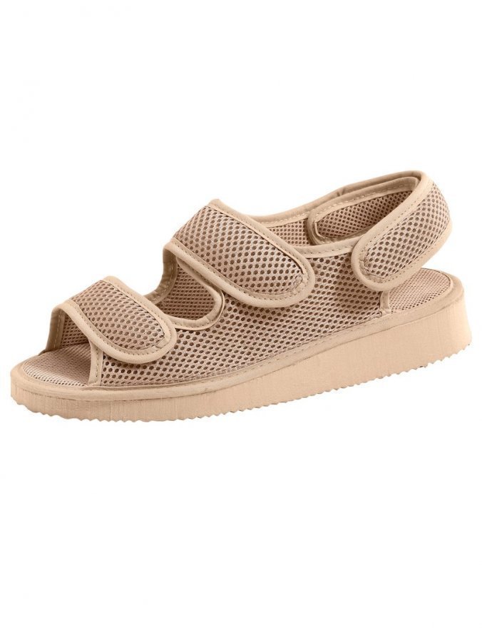 Naturläuferin tarrasandaletit pehmeää, ilmavaa kangasmateriaalia (100 % polyesteriä). Kaikki kolme tarraremmiä voidaan säätää portaattomasti ja löysätä super-avoinaiseksi, näin niiden istuvuudesta saadaan yksilöllinen ja ne sopivat ihanteellisesti ongelmajaloille, kuten vaivaisenluu, turvonneet jalat ja vasaravarpaat. Ne sopivat myös ihanteellisesti henkilöille, joilla on arat kantapää. Kengät sopivat käytettäviksi myös silloin, jos kantapäässä tai varpaissa on tulehdusta tai turvotusta. Miellyttävän pehmeä kangasvuori ja kankainen sisäpohja (100 % polyesteriä). Superkevyt, profiloitu EVA-ulkopohja, jossa on hyvä iskunvaimennus ja 30 mm:n kanta. Kenkä painaa vain 100 grammaa. Lestin leveys G