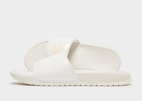 On chilled days, finish up your ’fit with these women’s Benassi Just Do It Slides from Nike. With a single footstrap in a glossy phantom colourway, these summer-ready slides have a comfy footbed and grippy sole. Finished up with signature Nike branding to the front.