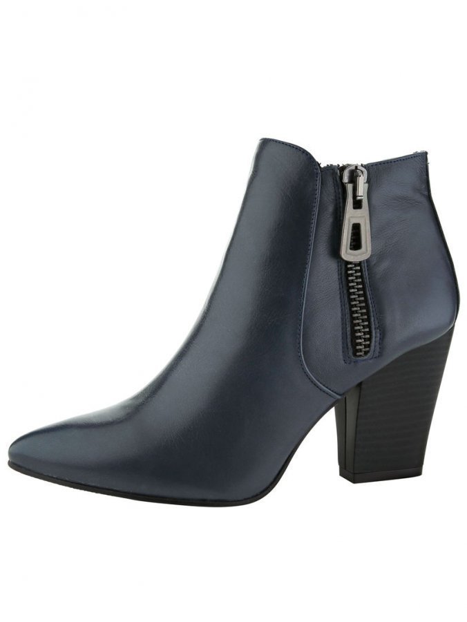 Nilkkurit, valmistettu pehmeästä nappanahasta. Ulkosyrjässä kätevä vetoketju. Miellyttävä tekstiilivuori ja mukavan tuntuinen nahkasisäpohja. Taipuisa ulkopohja, jossa on päällystetty 80 mm:n korko. Varren korkeus n. 11 cm. Lestin leveys F.
