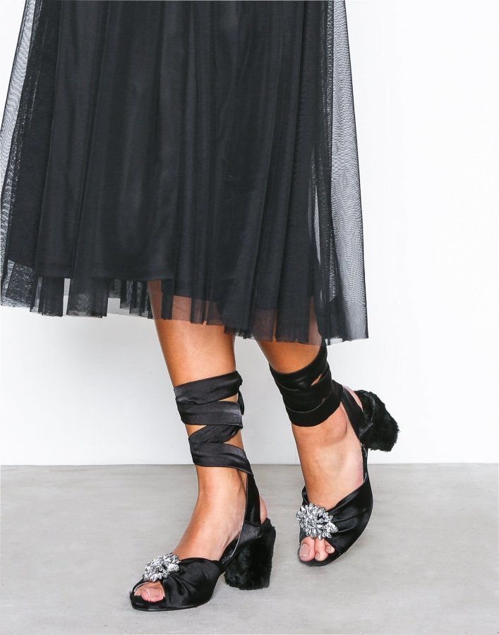 Nly SHoes satiinisandaalit. Timantti koristelut ylhäällä. Pyöreä avoin kärki. Korko 8, 5 cm. Suljetaan naruilla. Verhoiltu tolppakorko. Valmistettu tekstiilistä. Ulkopohja muovia. Tuotenumero: 421254-0014. Väri: Musta. Kategoriaryhmä: Kengät / Heels / Low Heel. Koot: 35, 36, 37, 38, 39, 40, 41. Kohderyhmä: Naiset.