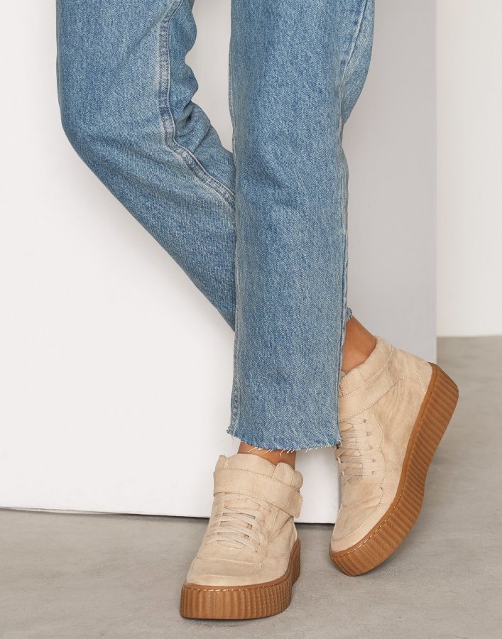 NLY Shoes tekomokka tennarit. High-top-malli. Leveä kumipohja. Narut ja tarra. Valmistettu synteetistä. SIsäpuoli synteettiä. Pohja kumia. Tuotenumero: 421161-6251. Väri: Beige Mist. Kategoriaryhmä: Kengät / Sneakers / High Top. Koot: 36, 40, 37, 38, 39. Kohderyhmä: Naiset.