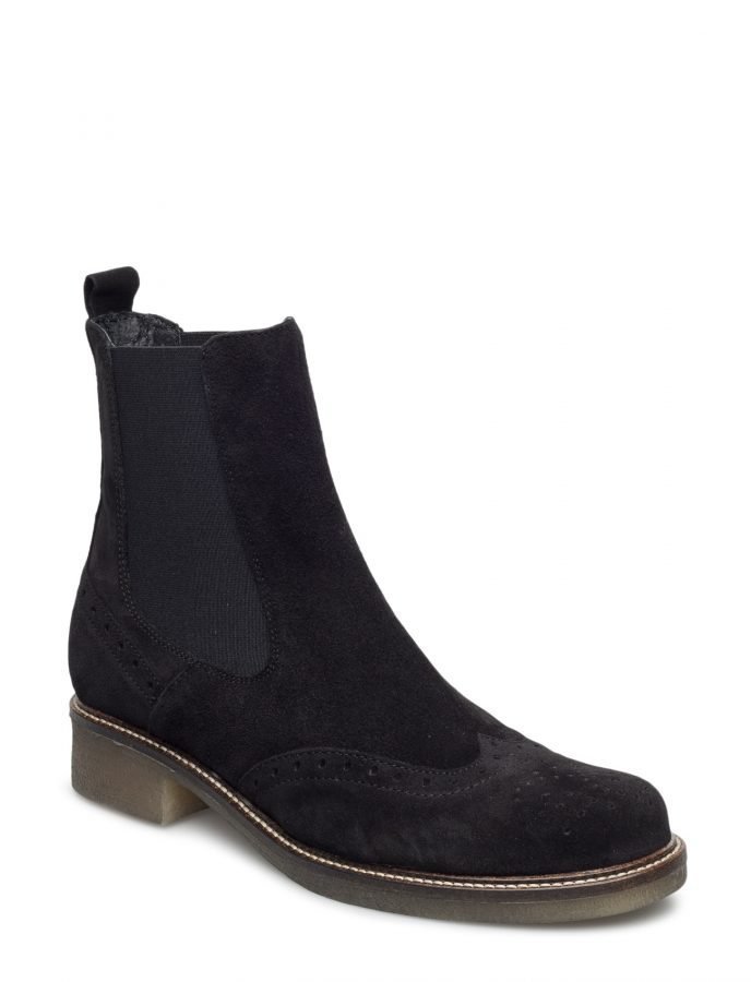 Nome Valmistusmateriaali: Mokkanahka Mokkanahkaiset päälliset Vetosilmukat Ommelyksityiskohta Tuplaresorit Mantelinmuotoinen kärki Matala tolppakorko Valmistettu Italiassa