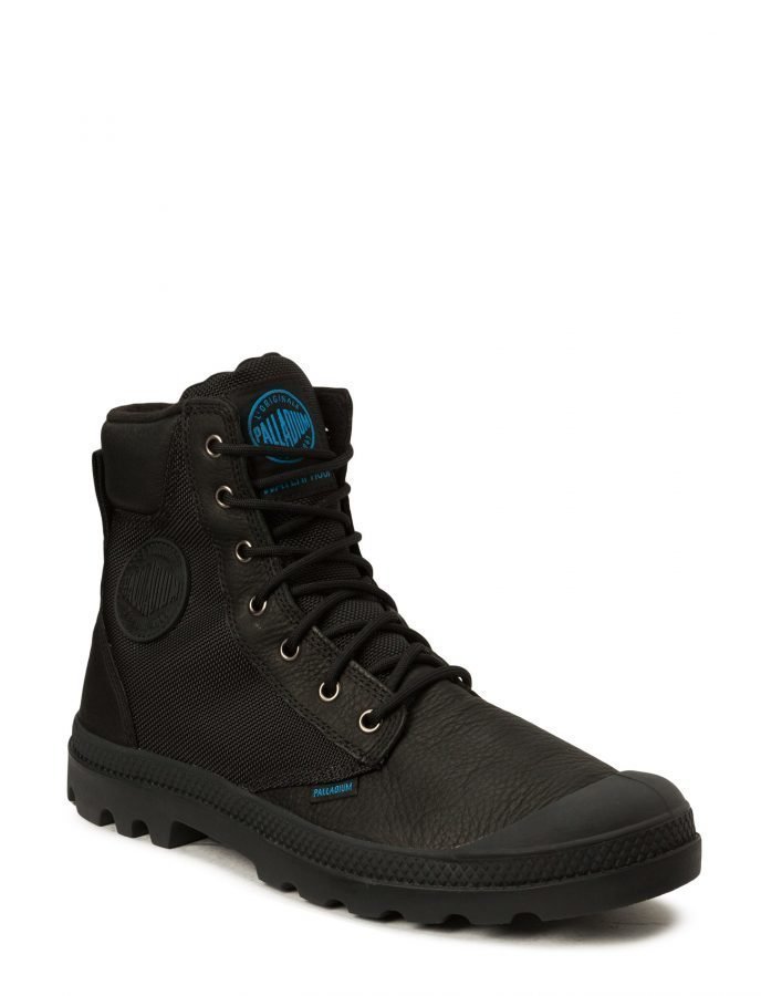 Palladium Valmistusmateriaali: Päällinen: Vedenkestävä Nahka ulkopohja: Kumi Vedenkestävä Nauhakiinnitys Kevyesti topattu aukko sekä läppä Irrotettava