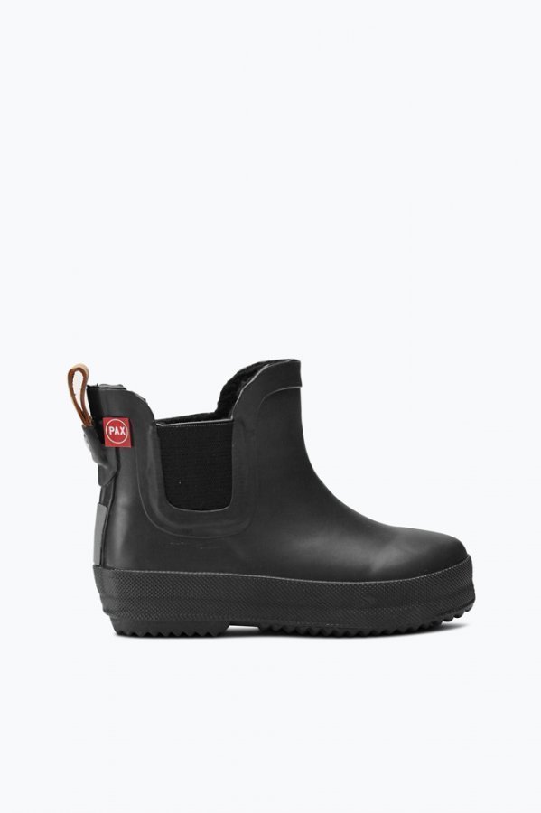Kätevät Pax Kvart -kumisaappaat joissa lämmin teddyvuori. Irrotettava sisäpohja – ilman sisäpohjaa kumisaappaat sopivat pidempään lapsen jalan kasvaessa. Kätevä heijastindetalji takana kannassa. Takana varressa oleva vetolenkki helpottaa pukemista. Päällinen: kumia Vuori: teddykarvaa Sisäpohja: irrotettava sisäpohja kangasta, jonka alla teddykarvaa Ulkopohja: kumia Kun tilaat lapselle kenkiä, laske tämän verran kasvunvaraa: sandaalit/kävelykengät: 10–15 mm kengät/saappaat: 15–20 mm Kengän koko/sisämitta 20 = mm 21 = mm 22 = mm 23 = mm 24 = mm 25 = mm Mittaa lapsen jalka näin: Laita lattialle A4-kokoinen paperiarkki, niin että paperin pääty on seinässä kiinni. Laita lapsi seisomaan paperin päälle, niin että kantapää koskettaa seinää. Lapsen jalkojen tulisi olla vierekkäin ja kehon painon jakaantua tasaisesti molemmille jaloille, ilman että lapsi nojaa mihinkään. Tee paperille merkintä jalan pisimmästä kohdasta (useimmiten isovarpaan kohdalta) ja mittaa mittanauhalla pituus paperin päädystä merkintään. Lapsen jalka kasvaa keskimäärin näin nopeasti: 1–2-vuotiaalla noin 20 mm vuodessa 2–3-vuotiaalla noin 15 mm vuodessa 3–11-vuotiaalla noin 10 mm vuodessa
