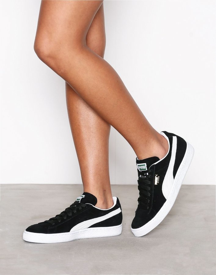 Puma -tennarit mokasta. Pyöreä kärki ja nauhat edessä. Koristeraidat sivuilla. Logot kengän kielessä, sivulla ja kannassa. Mokkaa. Sisäpuoli nahkaa ja tekstiiliä. Kumipohja. Tuotenumero: 640537-0162. Väri: Musta/valkoinen. Kategoriaryhmä: Kengät / Sneakers / Low Top. Koot: 36, 37, 38, 39, 40, 41. Kohderyhmä: Naiset.