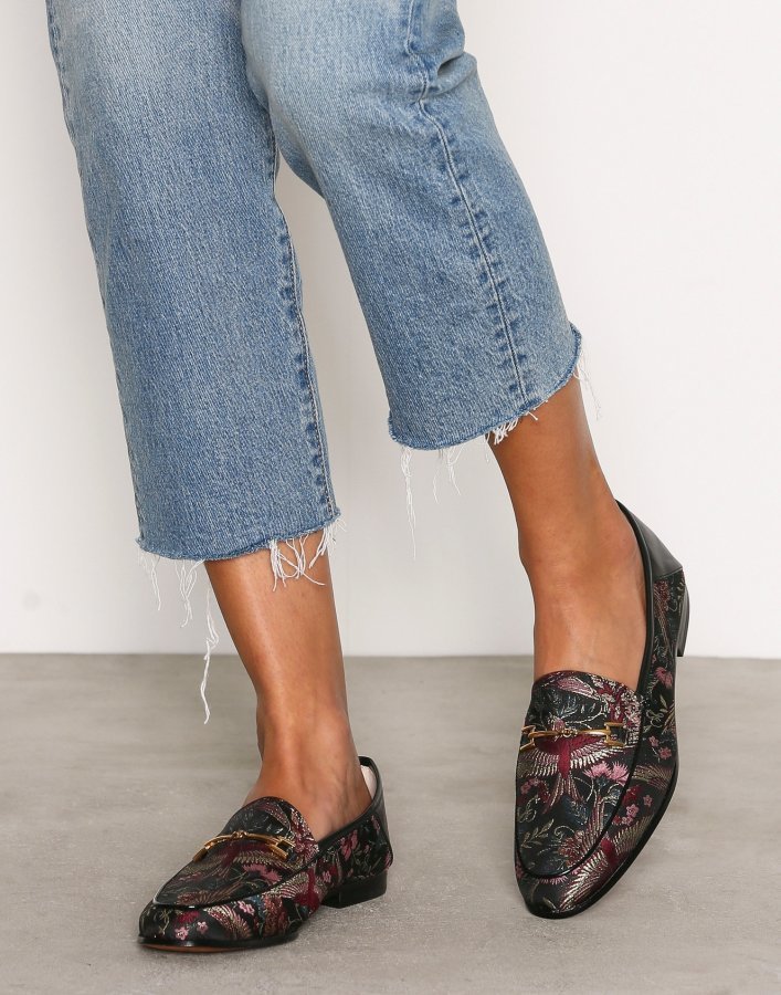 Sam Edelman kuvioidut tekstiili loaferit. Kullanvärinen koru edessä.Valmistettu tekstiilistä ja synteetistä. Sisäpuoli synteettiä ja nahkaa. Ulkopohja nahkaa. Tuotenumero: 138671-0014. Väri: Musta. Kategoriaryhmä: Kengät / Flats / Loafers. Koot: 38, 39, 41, 36, 37, 40. Kohderyhmä: Naiset.