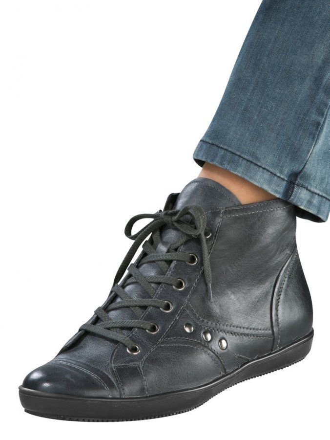 Semler-merkkiset nilkkurit, valmistettu pehmeästä sileästä nahasta. Kengissä on muodikkaat niittiapplikaatiot. Vuori on nahkaa ja tekstiiliä. Nahkapinnoitettu sisäpohja voidaan vaihtaa (paksuus edessä 2 mm, takana 2 mm). Sisäpohjassa on myös jalkaholvin tuki. Varren sisäsyrjässä vetoketjusuljenta. Taipuisa ja tasainen 15 mm:n pohja. Varren korkeus n. 10 cm. Lestin leveys H.