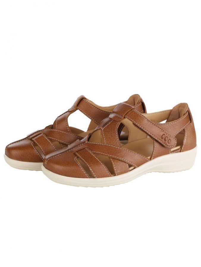 Ilmavat ja ihanan kevyet kengät, jotka ovat täydelliset hellepäiviin. Pehmeää pintanahkaa. Tarraremmin ansiosta kengät pysyvät hyvin jalassa. Miellyttävä vasikannahkainen vuori sekä irrotettava, vasikannahalla päällystetty korkkisisäpohja (paksuus edessä 7 mm, takana 16 mm). Kenkiin voidaan vaihtaa irtopohjalliset. Vasikannahka sitoo kosteutta ja estää hankaamista. Kevyt PU-ulkopohja. 20 mm:n kanta. Erikoislesti M.