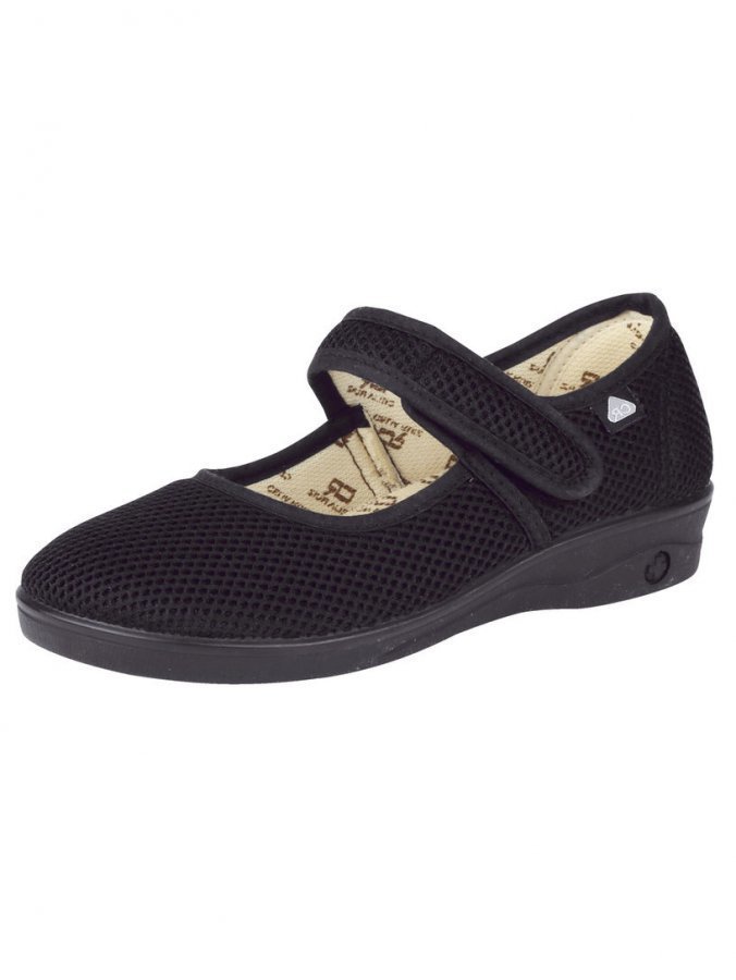 Tarrakengät, valmistettu hengittävästä tekstiilimateriaalista. Portaattomasti säädettävä tarraremmi jalkapöydän päällä. Tekstiilivuori ja kevysti pehmustettu sisäpohja 100 % ihoystävällistä puuvillaa. Erittäin taipuisa ulkopohja, jossa on 30 mm:n kiilakanta. Lestin leveys H.