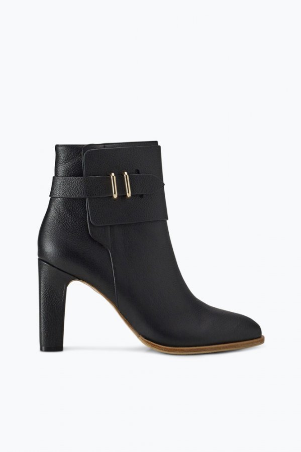 Klassiset, laadukkaat Tiger of Sweden -nilkkurit. Varressa kietaisuleikkaus ja kullanvärinen koristesolki. Vetoketju sisäsivulla. Korkea, suorat korko on päällystetty samalla materiaalilla kuin päällinen. Pohjan reunassa vaaleaa nahkaa. Pyöristetty kärki. Päällinen: nahkaa Vuori: nahkaa Sisäpohja: nahkaa Korko: päällystetty Ulkopohja: nahkaa ja tekokumia Varren korkeus: n. 12,5 cm Koron korkeus: n. 10 cm 100% nahkaa