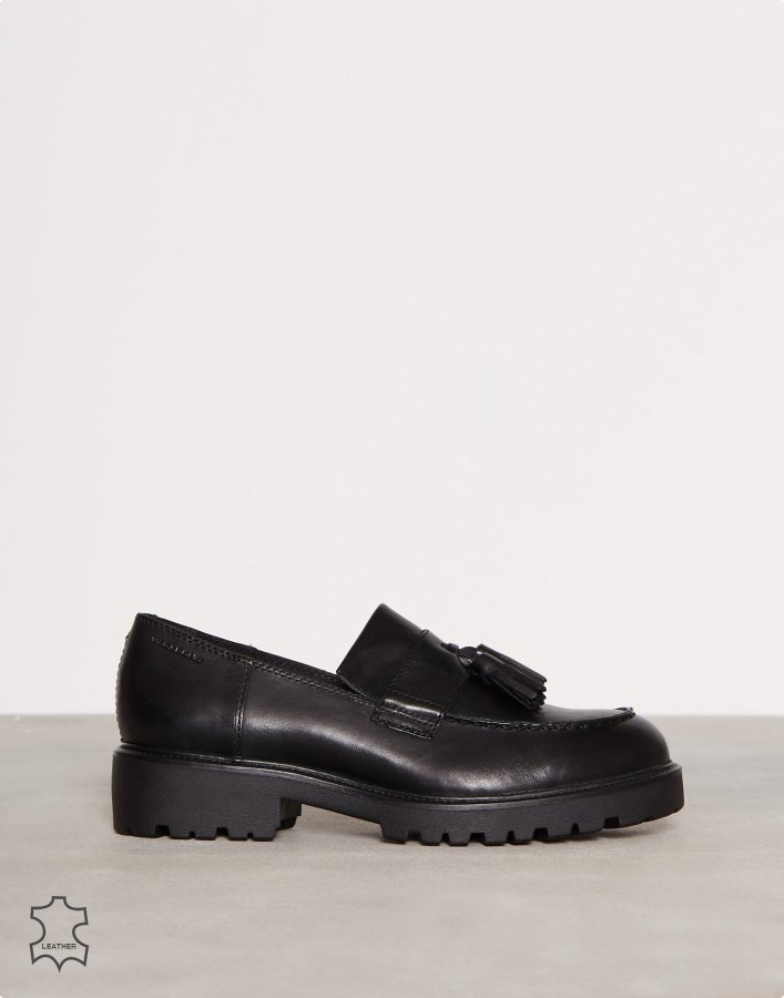 Vagabond -kengät aidosta nahasta. Klassinen malli, jossa koristetupsut ylhällä. Hieman paksu pohja. Pohja takaa 4 cm. Valmistettu nahkasta. Sisäpuoli nahkaa ja tekstiiliä. Kumipohja. Tuotenumero: 978400-0014. Väri: Musta. Kategoriaryhmä: Kengät / Boots / Flat. Koot: 39, 40, 37, 36, 38, 41. Kohderyhmä: Naiset.